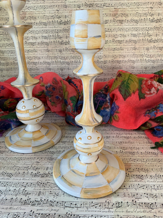 Parchment Check Taper Candle Holders, Pair