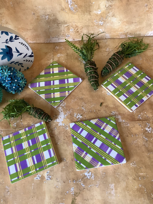 Plaid Coasters in Wooden Box