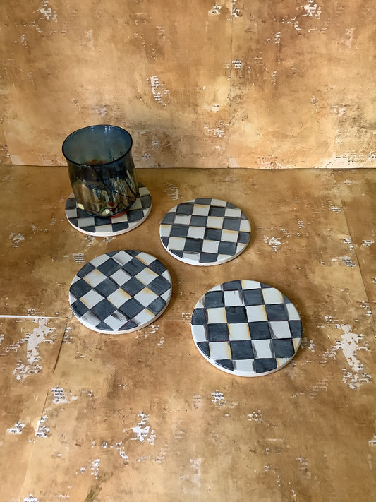 Charcoal and white checkered coasters