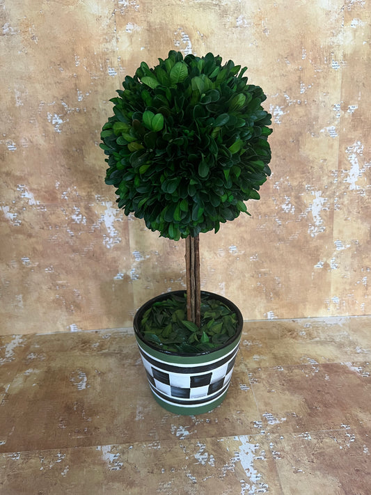 Faux Boxwood Topiary Trees in Hand Painted Ceramic Pots, Set of 2