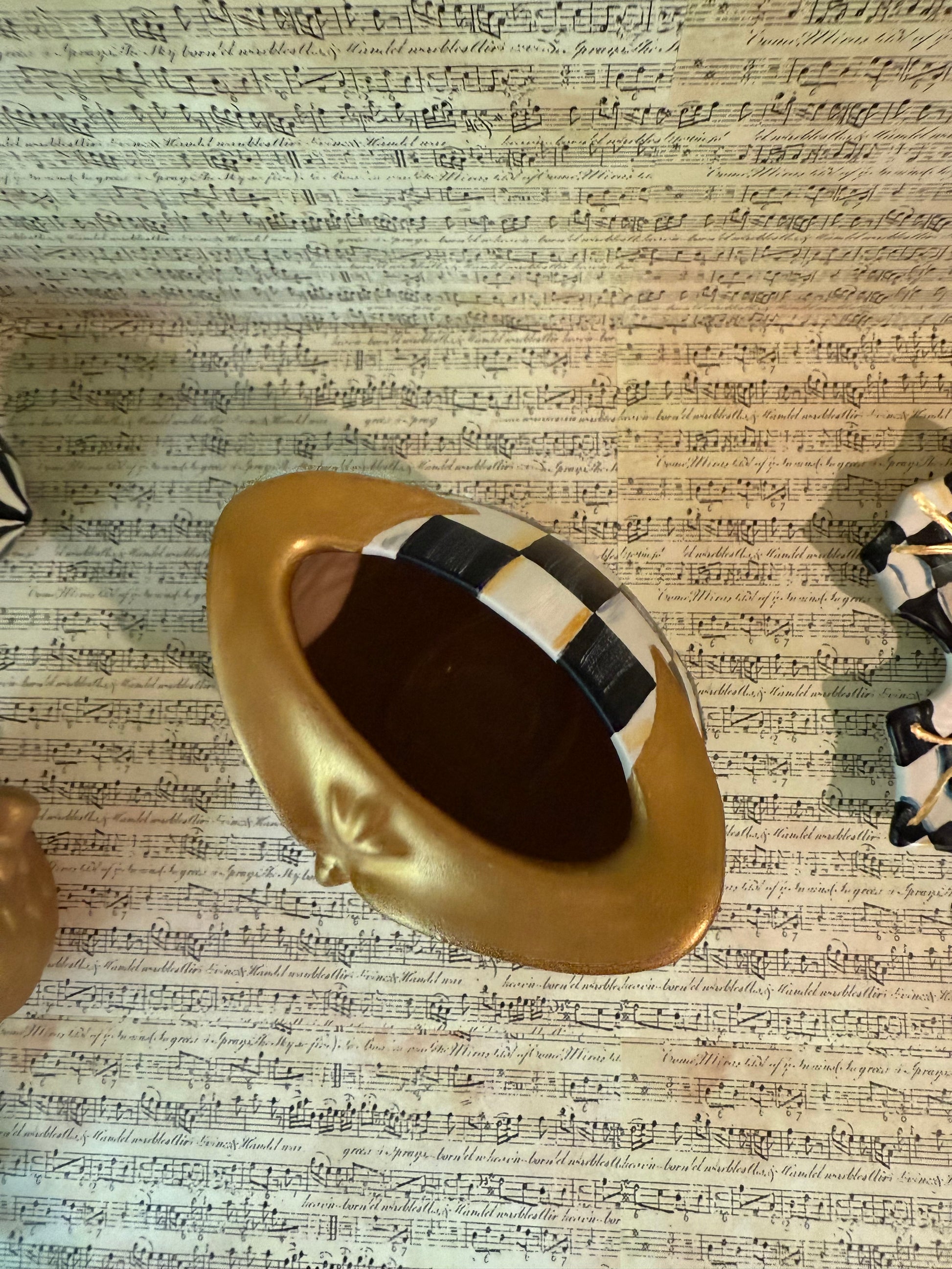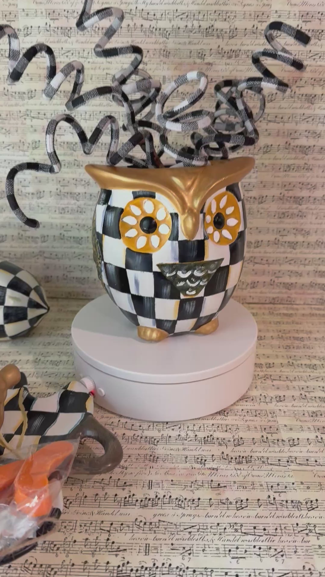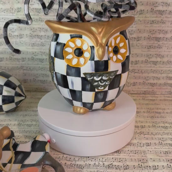 Who said a vase can’t upstage its bouquet? All eyes will be on this handsome, hand painted owl with decoupaged wings and metallic gold accents! Look closely, because there are so many details to appreciate!
